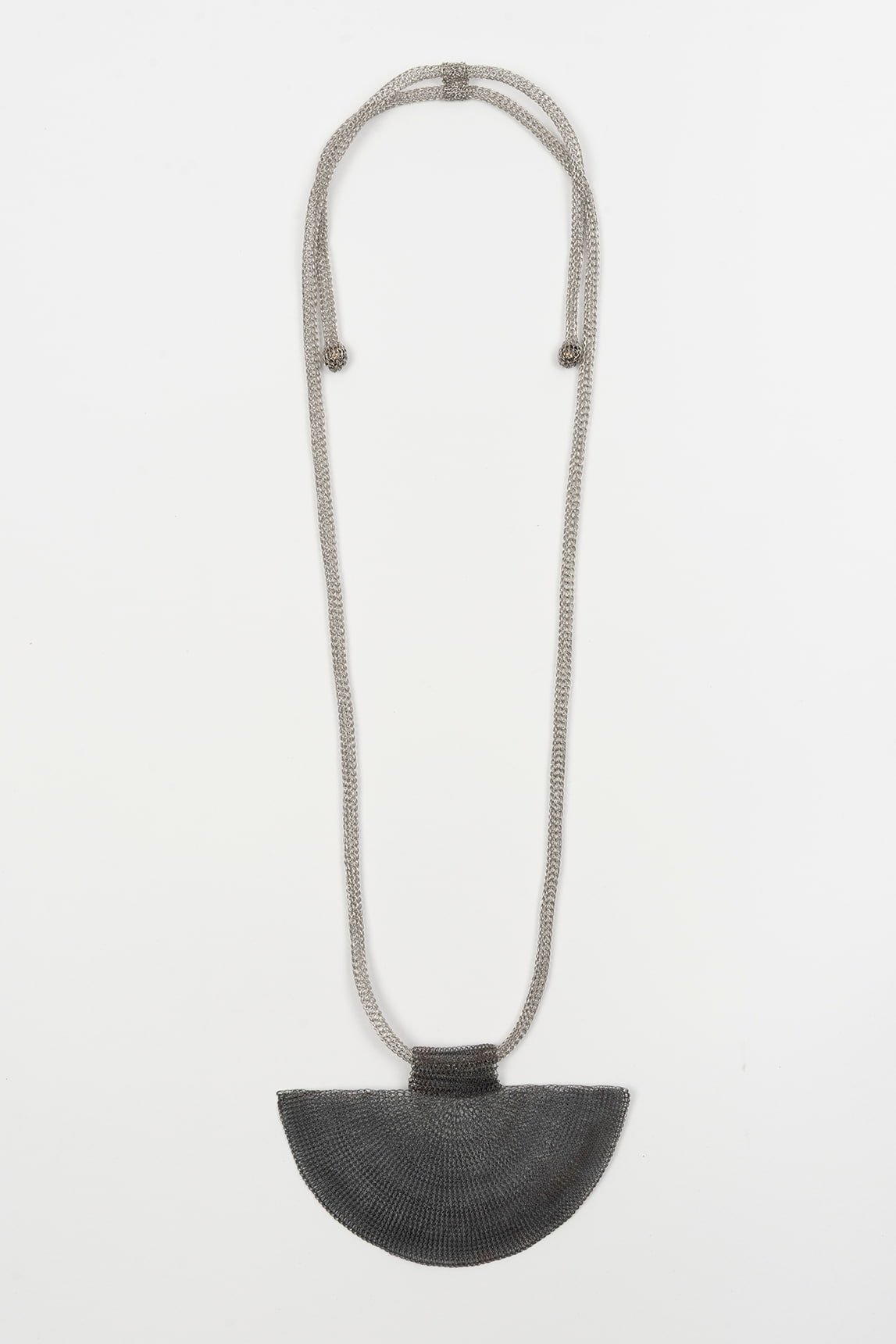 Un collar de aire contemporáneo que aporta brillo discreto y movimiento gracias a su malla flexible. Ideal para elevar camisas, jerséis lisos o vestidos de punto.