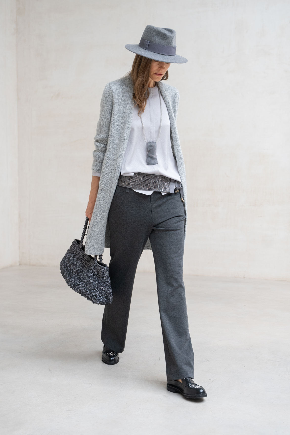 The pearl gray lamé Merano cardigan is perfect for adding a touch of subtle shine to any outfit. Its delicate fabric and versatile design make it a must-have for transitional and cool days.