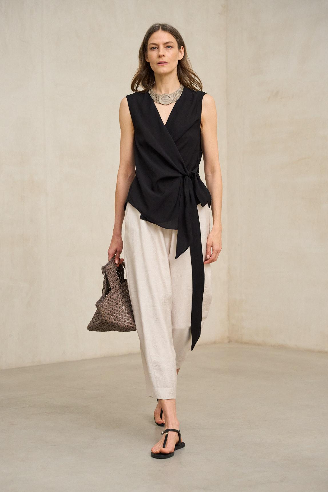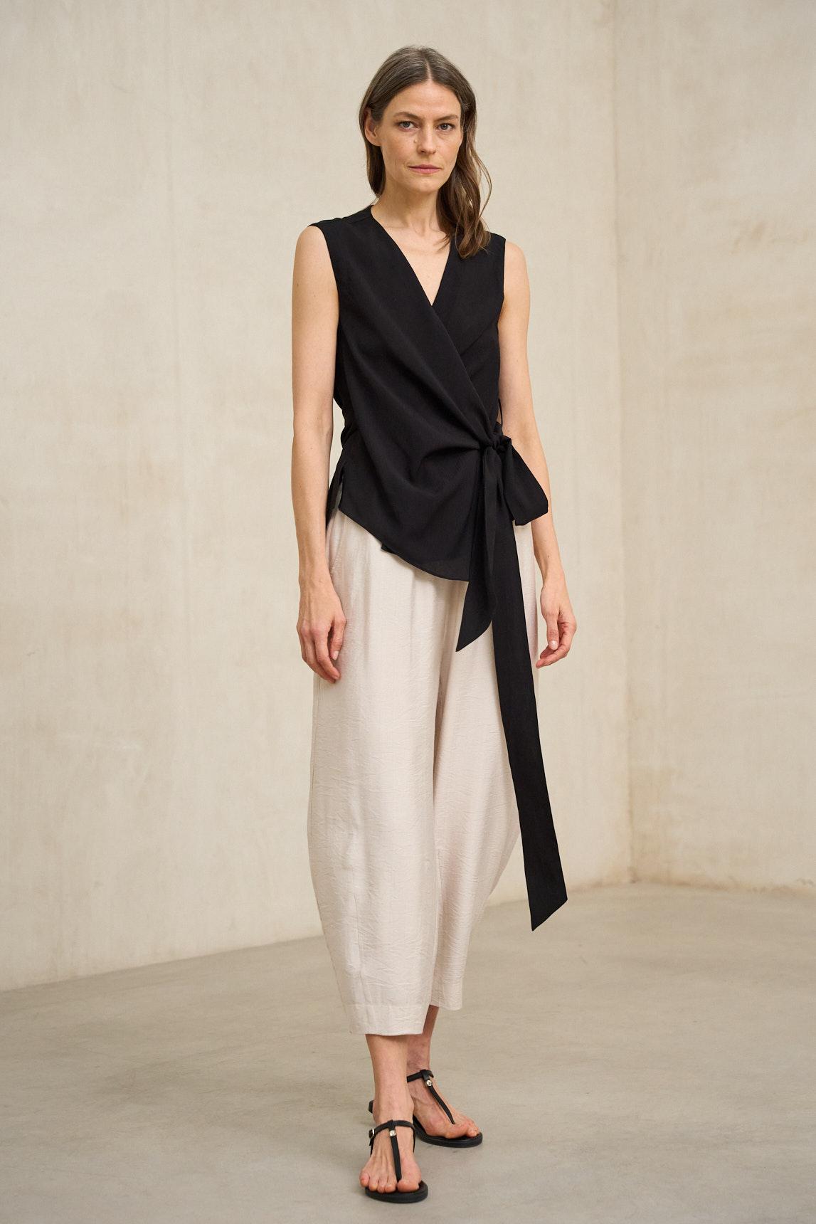 La Camisa Zarev negro interpreta el diseño cruzado en clave más sofisticada y rotunda. Su escote en pico y su estructura envolvente definen la silueta con equilibrio, mientras que la lazada lateral genera un efecto fluido y estilizado. El tejido ligero aporta movimiento sin rigidez, creando una caída elegante que funciona tanto en estilismos de día como en propuestas más formales. El negro refuerza su carácter atemporal y permite combinarla con pantalones amplios, faldas midi o looks monocromáticos de inspiración minimalista. Una camisa actual que combina diseño estructural y suavidad en una silueta favorecedora. Nos esforzamos por mostrar los colores de la forma más fiel posible, pero pueden variar ligeramente respecto a la realidad.