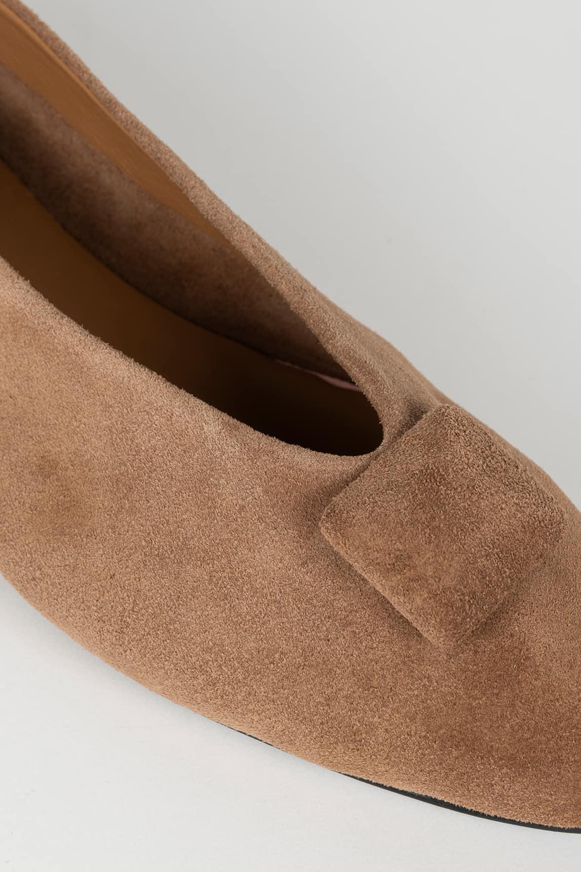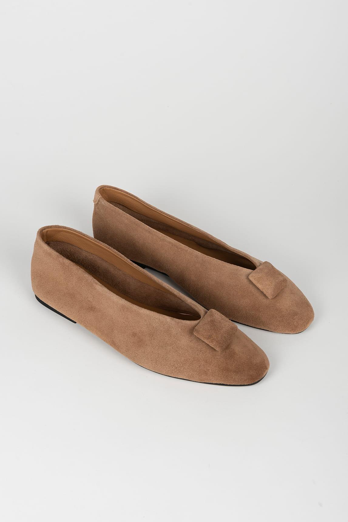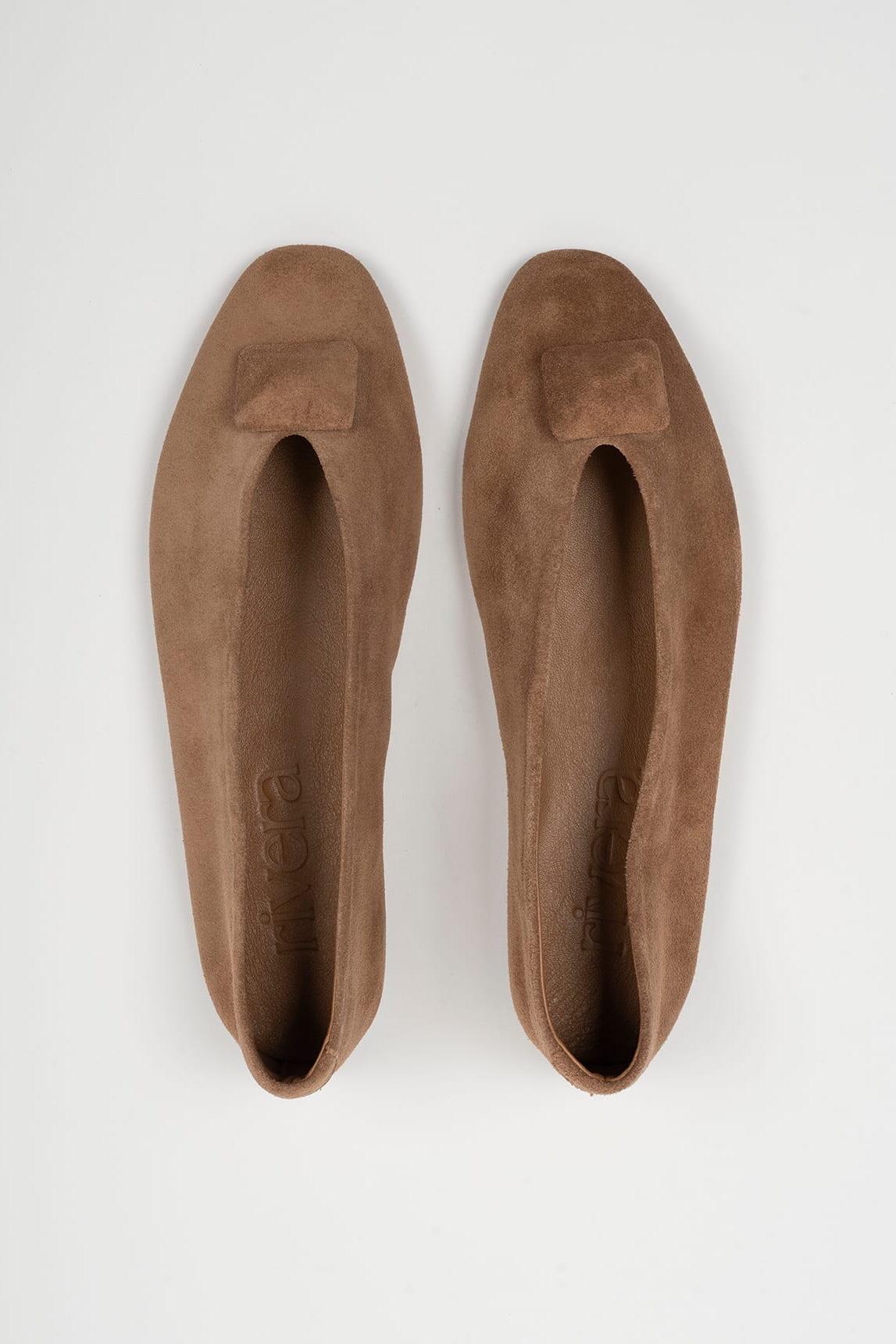 The Elvire Topo ballet flat features a clean, contemporary silhouette with a subtly structured neckline that elegantly frames the instep. The soft suede finish adds texture and depth, reinforcing its sophisticated and timeless character. Its flexible construction allows it to adapt naturally to the foot, while the cushioned insole promotes a comfortable stride for everyday wear. The streamlined shape balances simplicity and design without overwhelming the silhouette. The taupe tone, neutral and versatile, combines easily with ecru, beige, olive green or monochromatic styles in earth tones. A lightweight, feminine and functional ballet flat that brings discreet sophistication to the seasonal wardrobe. We strive to display colors as accurately as possible, but they may vary slightly from reality.