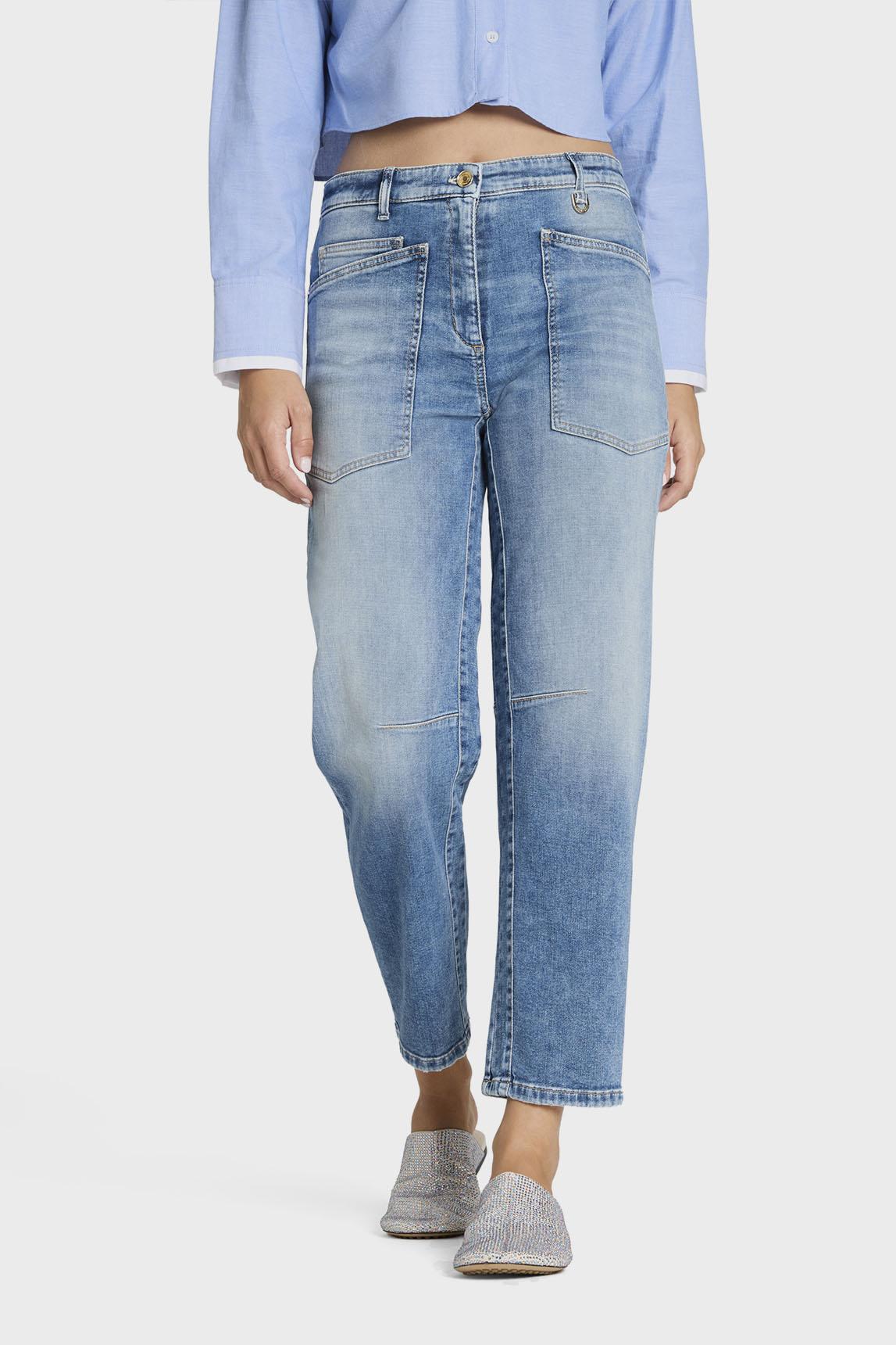 Este vaquero de Cambio presenta la característica silueta O-Shape cropped, definida por un volumen suave en la parte superior que se estrecha ligeramente hacia el tobillo. La forma redondeada envuelve la figura con naturalidad, creando un equilibrio moderno entre amplitud y definición que aporta comodidad y un estilo relajado. Está confeccionado en denim azul auténtico con ligero stretch, un tejido resistente y flexible que garantiza un ajuste cómodo y una gran libertad de movimiento. El tono azul denim clásico aporta versatilidad y carácter, permitiendo integrarlo fácilmente en estilismos tanto casuales como más cuidados. El diseño se completa con grandes bolsillos delanteros de parche que refuerzan su estética contemporánea, mientras que los detalles metálicos en tono dorado aportan un acabado sofisticado que eleva el conjunto. Un vaquero actual que combina funcionalidad, comodidad y un aire urbano refinado. Largo: 28" (aprox. 71 cm de entrepierna) Nos esforzamos por mostrar los colores de la forma más fiel posible, pero pueden variar ligeramente respecto a la realidad.