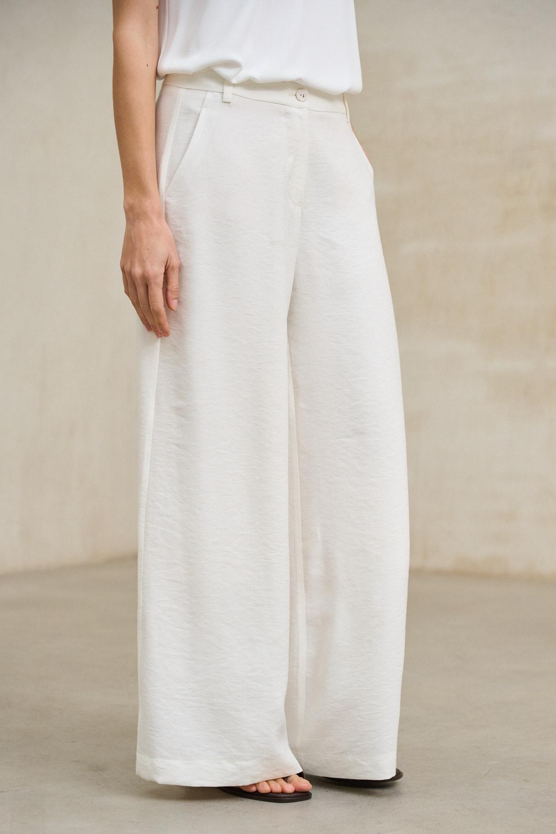 The off-white Évren trousers stand out for their wide, clean silhouette, designed to provide movement and natural elegance. Made from a soft, fluid fabric, they feature a wide leg and a straight cut that flatters the figure without clinging. The clean waistband and minimalist structure reinforce its contemporary aesthetic, allowing the volume of the trousers to take center stage. The off-white, luminous, and versatile color makes it an essential piece for neutral and sophisticated outfits. The raw Évren works perfectly with lightweight shirts, structured tops, or relaxed blazers. Ideal for both casual office looks and more refined, minimalist outfits. We strive to display colors as accurately as possible, but they may vary slightly from reality.