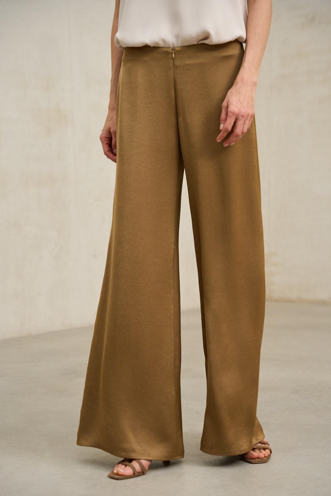 Designed for warm days or transitional weather, these trousers offer a sense of spaciousness and comfort without sacrificing style. They add a warm and serene touch that elevates neutral looks and works equally well for a casual office setting or evening out.