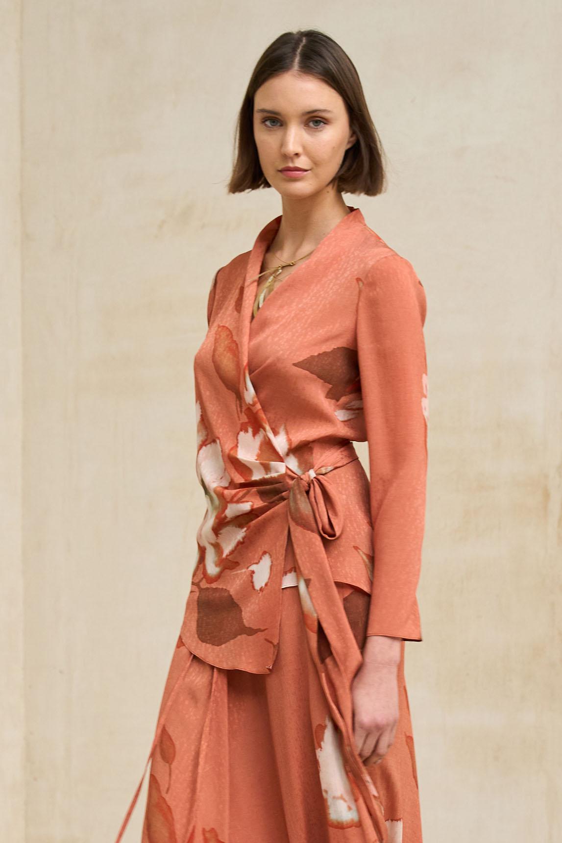 Puede combinarse con pantalones neutros para un look más depurado o llevarse junto a la Falda Ailén estampado para crear un conjunto coordinado con efecto vestido, perfecto para eventos informales, celebraciones de día o estilismos cuidados de primavera y verano.