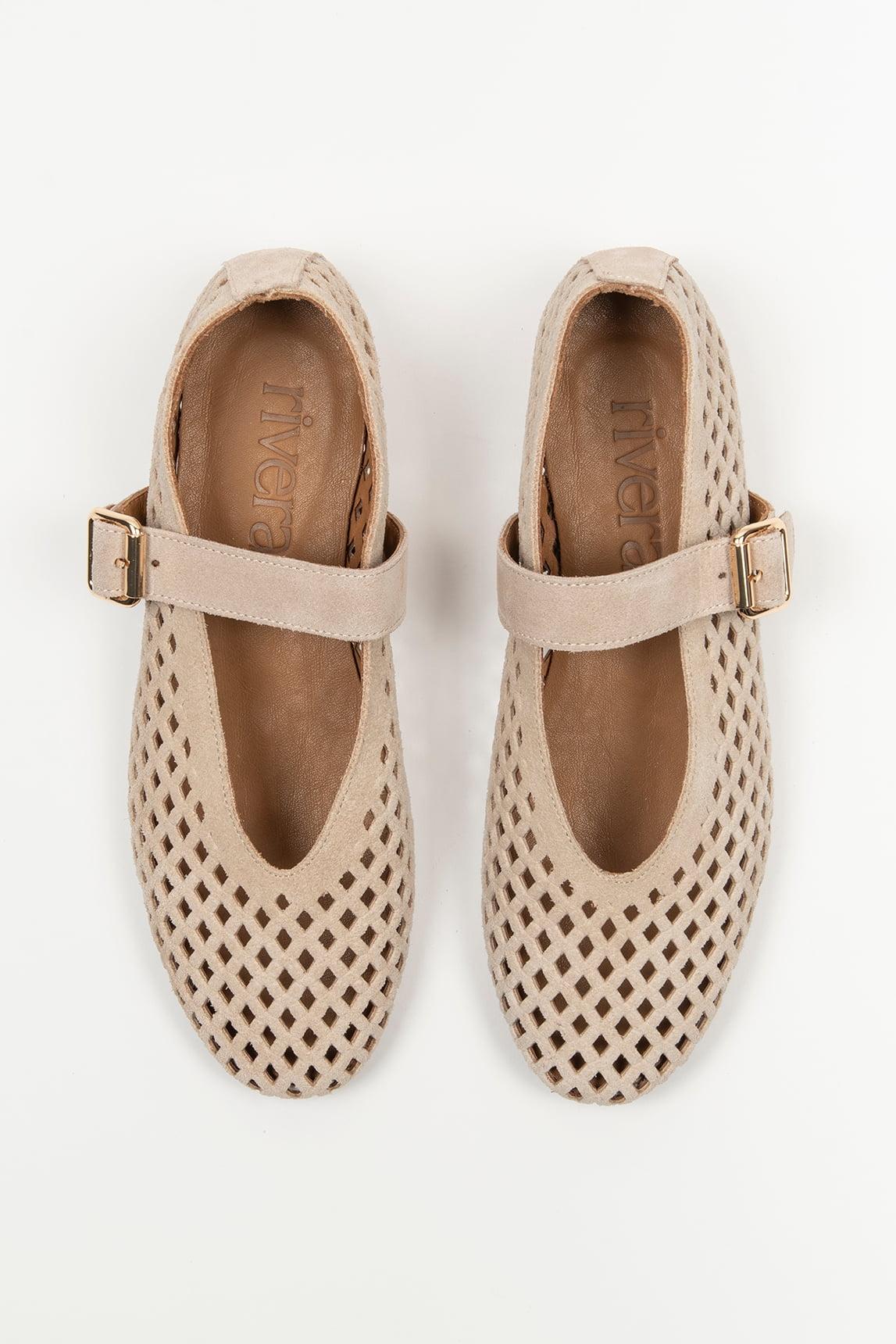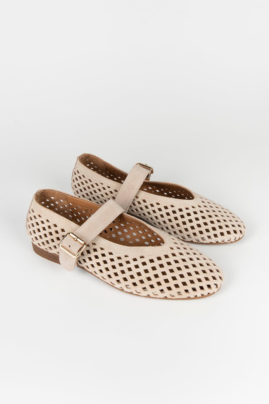La mercedita Buco crudo combina un diseño clásico con un acabado contemporáneo gracias a su tejido calado que aporta ligereza y textura al conjunto. Su silueta estilizada se adapta con suavidad al pie, creando un calzado elegante y cómodo para el día a día.