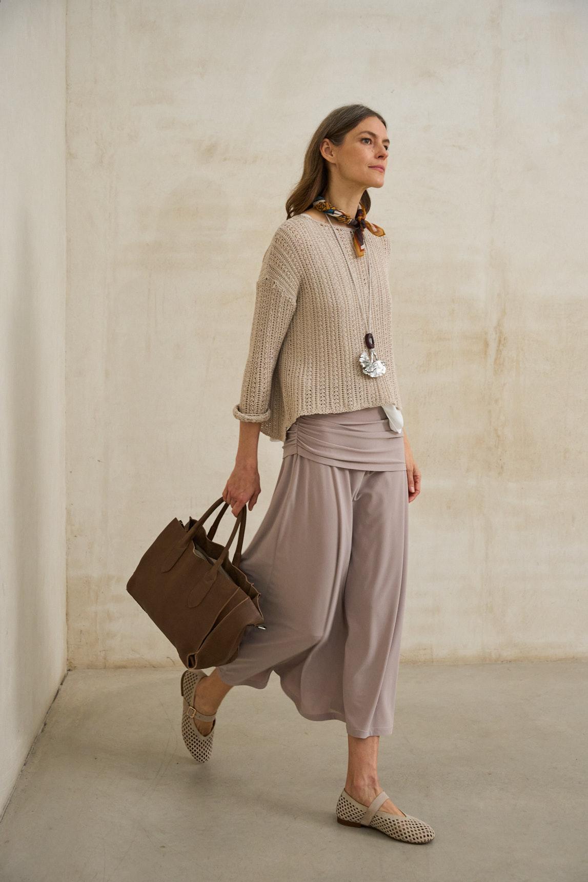 La Falda Kaia topo es una prenda versátil y atemporal. Su tono neutro y su acabado fluido permiten combinarla con camisas, tops o chaquetas ligeras, adaptándose con facilidad tanto a looks de día como a estilismos más refinados de noche.