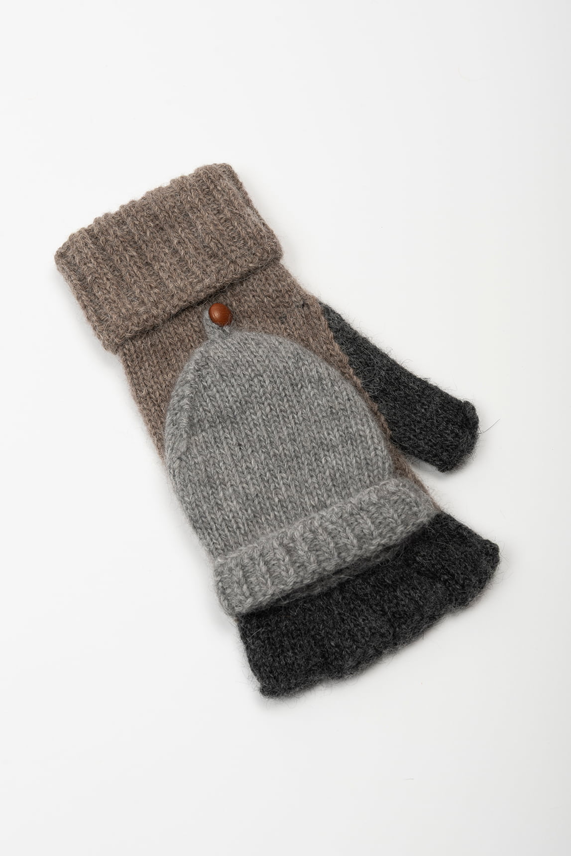 Estos mitones combinan funcionalidad y estilo en una pieza pensada para los días fríos. Su diseño convertible permite adaptarlos fácilmente entre guantes sin dedos y mitones cerrados, ofreciendo versatilidad y abrigo según la necesidad. La mezcla de lana y angora aporta suavidad, calidez y un tacto agradable, mientras que su estética atemporal los convierte en un complemento fácil de integrar en looks urbanos y de fin de semana.