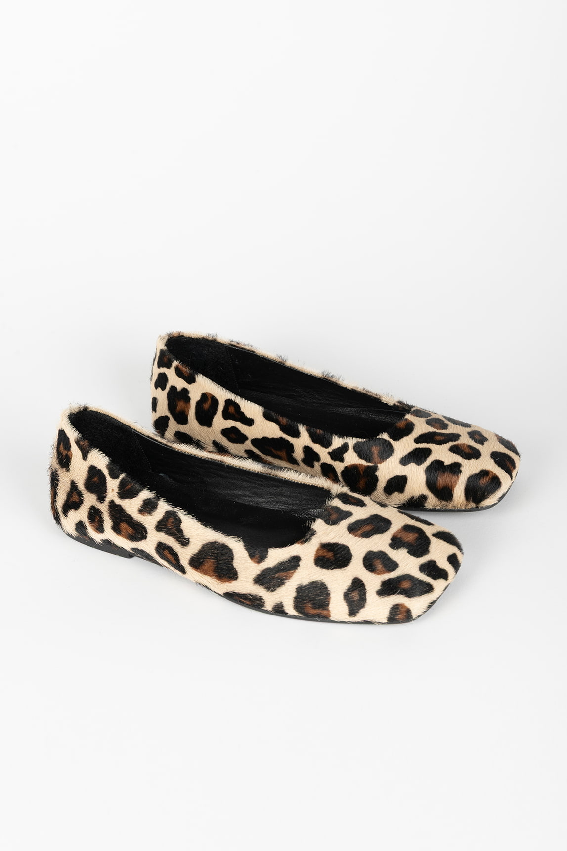 Déjate llevar por el estilo más salvaje y sofisticado con nuestras bailarinas Rivera de punta cuadrada. Su exterior en estampado leopardo efecto pelo aporta fuerza y personalidad, mientras que su escote cerrado y punta geométrica actualizan este clásico con un aire moderno. La suela plana garantiza máxima comodidad en cada paso. Ideales para quienes apuestan por un look audaz con sello propio.