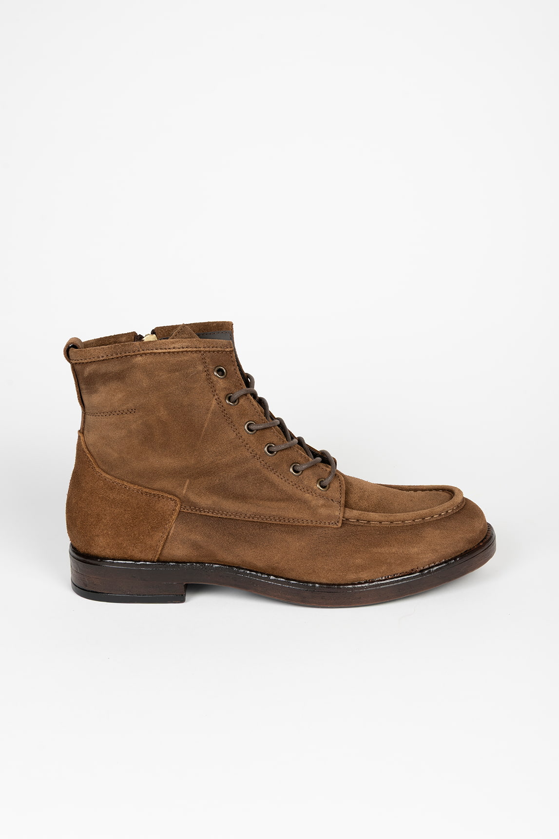 - Diseño tipo moc-toe con costuras vistas.