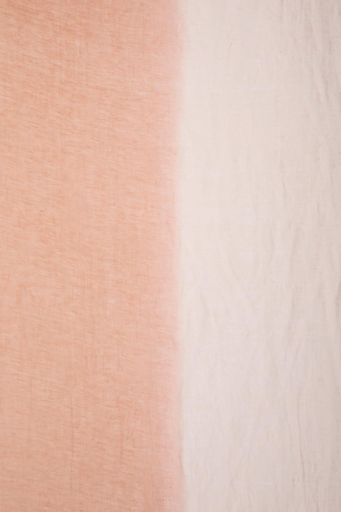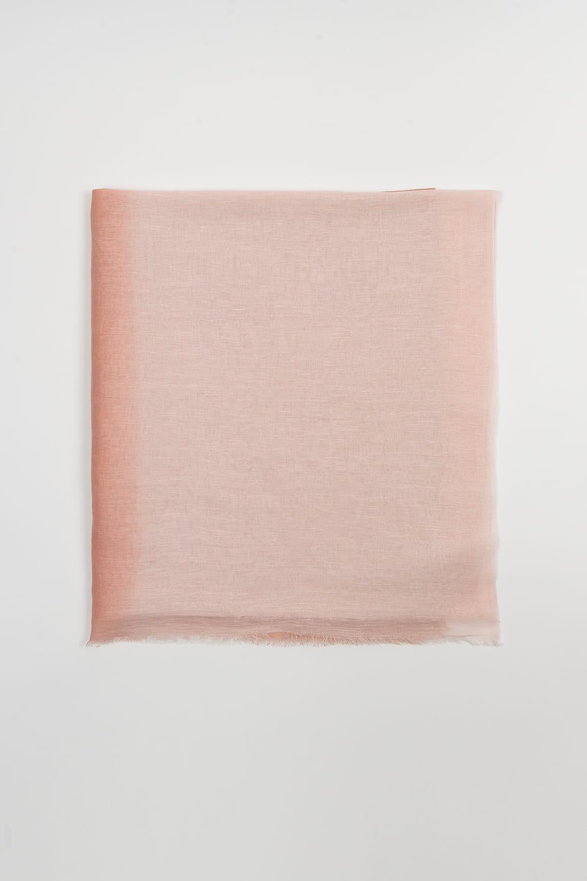 Fular de mujer confeccionado en una mezcla natural de 70 % lino y 30 % algodón. Su tejido ligero y vaporoso combina la frescura del lino con la suavidad del algodón, ofreciendo una textura agradable y transpirabilidad durante los meses cálidos. Presenta un degradado en tonos melocotón que aporta luminosidad y un toque artesanal.