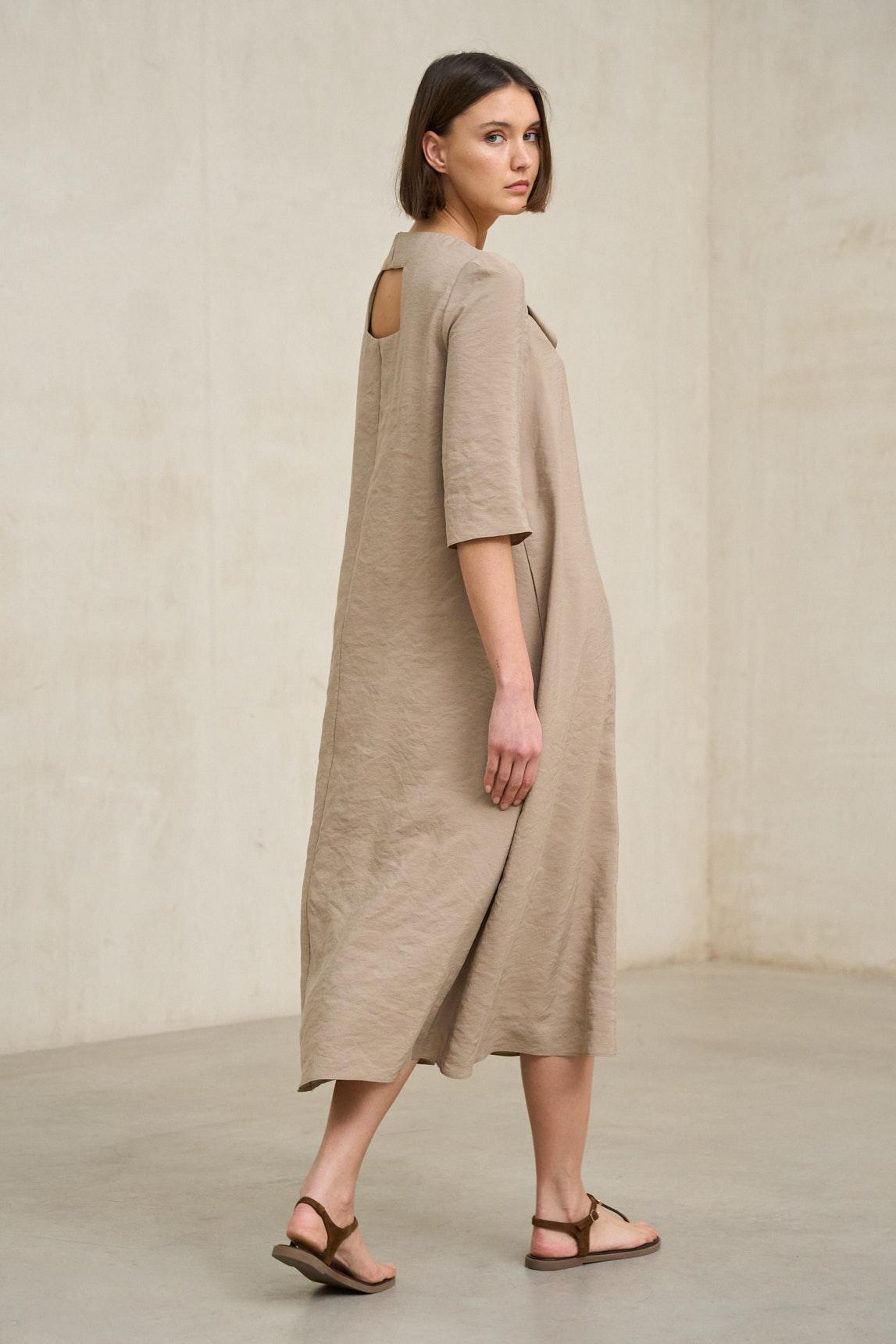 El tono arena refuerza su versatilidad dentro de la paleta neutra de la colección, combinando con facilidad con accesorios en cuero natural, dorado suave o tonos tierra. Puede llevarse con sandalias planas para un look relajado o elevarse con cuñas y complementos estructurados para comidas, eventos de día o reuniones especiales.